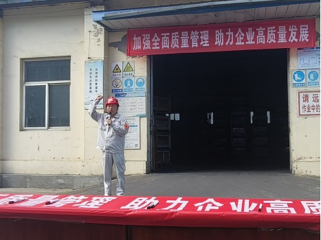 下午15时,仪式准时开始。首先由公司品管部负责人章晓东,对上半年部件事业部质量工作进行简要回顾,同时对近年度质量问题典型案例进行宣贯,提升大家对产品质量重要性的认知,要求全体员工要以质量月为契机,进一步营造浓厚质量提升的氛围,对大家下一步质量提升工作提出要求。