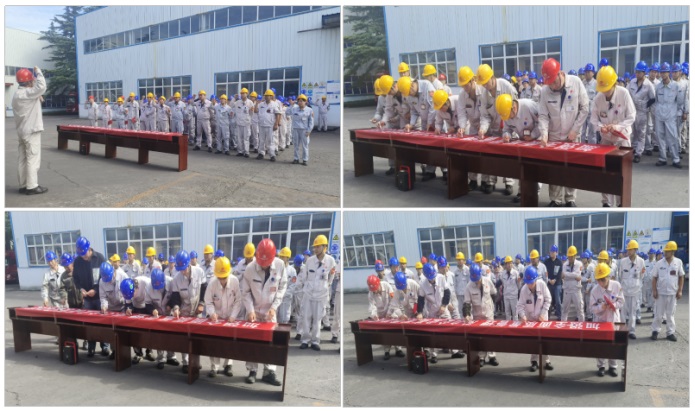 在赵总(赵振兴)的带领下进行了庄严地质量宣誓,并郑重地在质量标语条幅上签下了自己的名字。